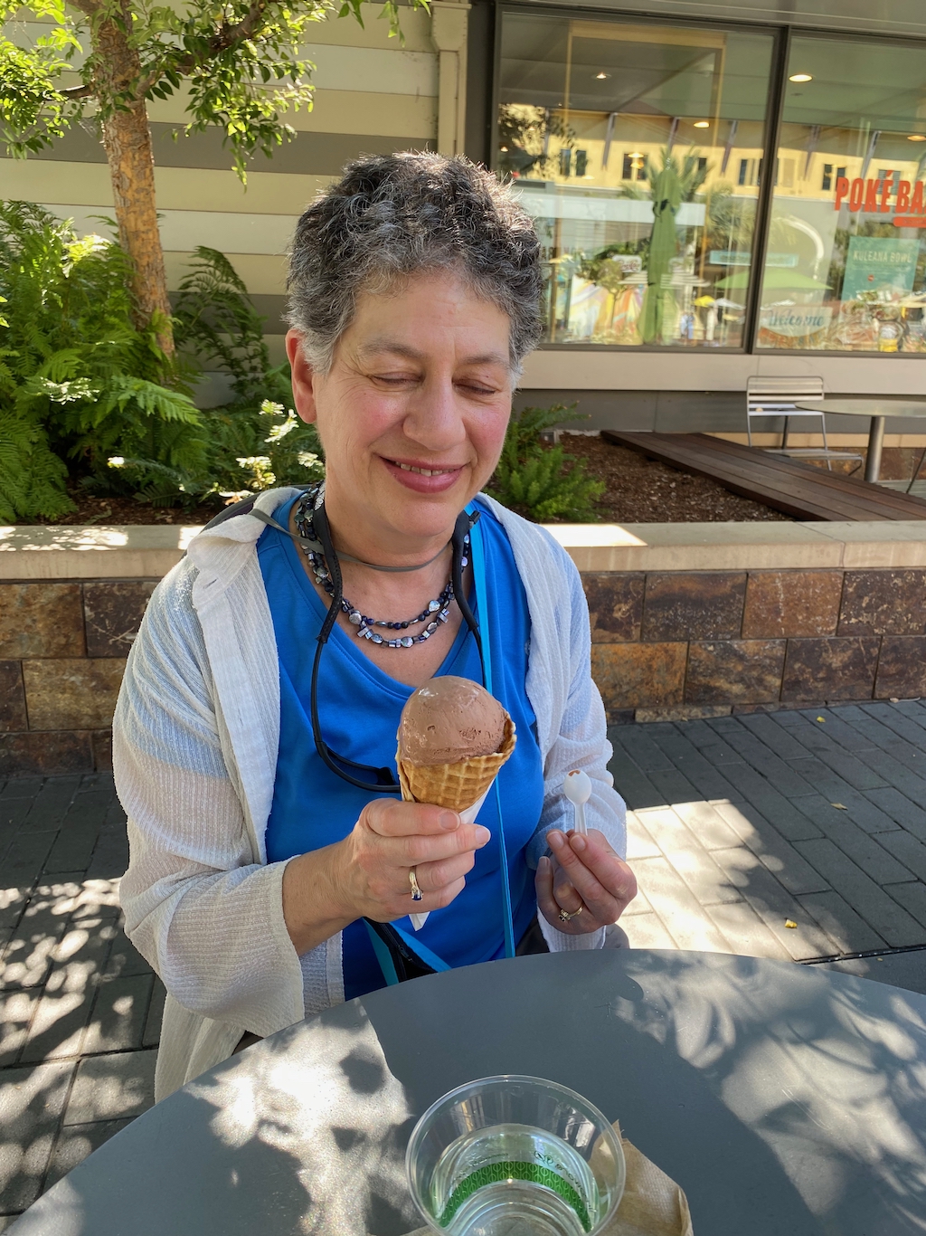 Then we crossed the street to show off Santana Row and get a snack; I was hoping to find something in the Farmers’ Market, but we settled for Smitten Ice Cream. Darn!