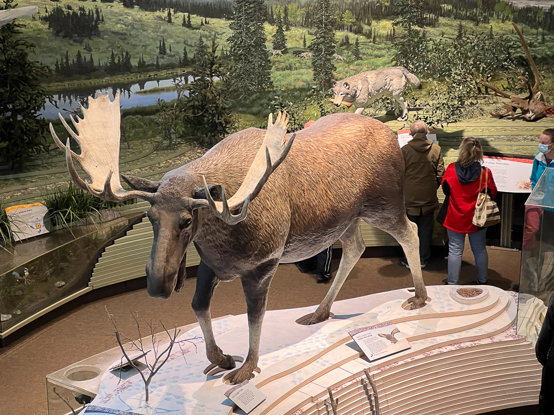We packed our bags, wandered around the hotel for a while, and eventually boarded the bus for the short trip to the Denali Park Railroad Depot. We had time enough for a short visit to the Visitor Center, where we finally saw a moose.