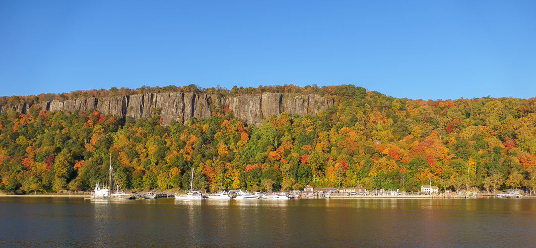 We sailed overnight to the Alpine Marina in Alpine, New Jersey. We were supposed to dock there, but a sailing ship stole our berth and we had to anchor just offshore, and that meant taking a tender to the morning excursions instead of just walking off the ship. Fortunately, the tender ride was only five minutes, and being in the middle of the river let me get better photos than being anchored would have.
