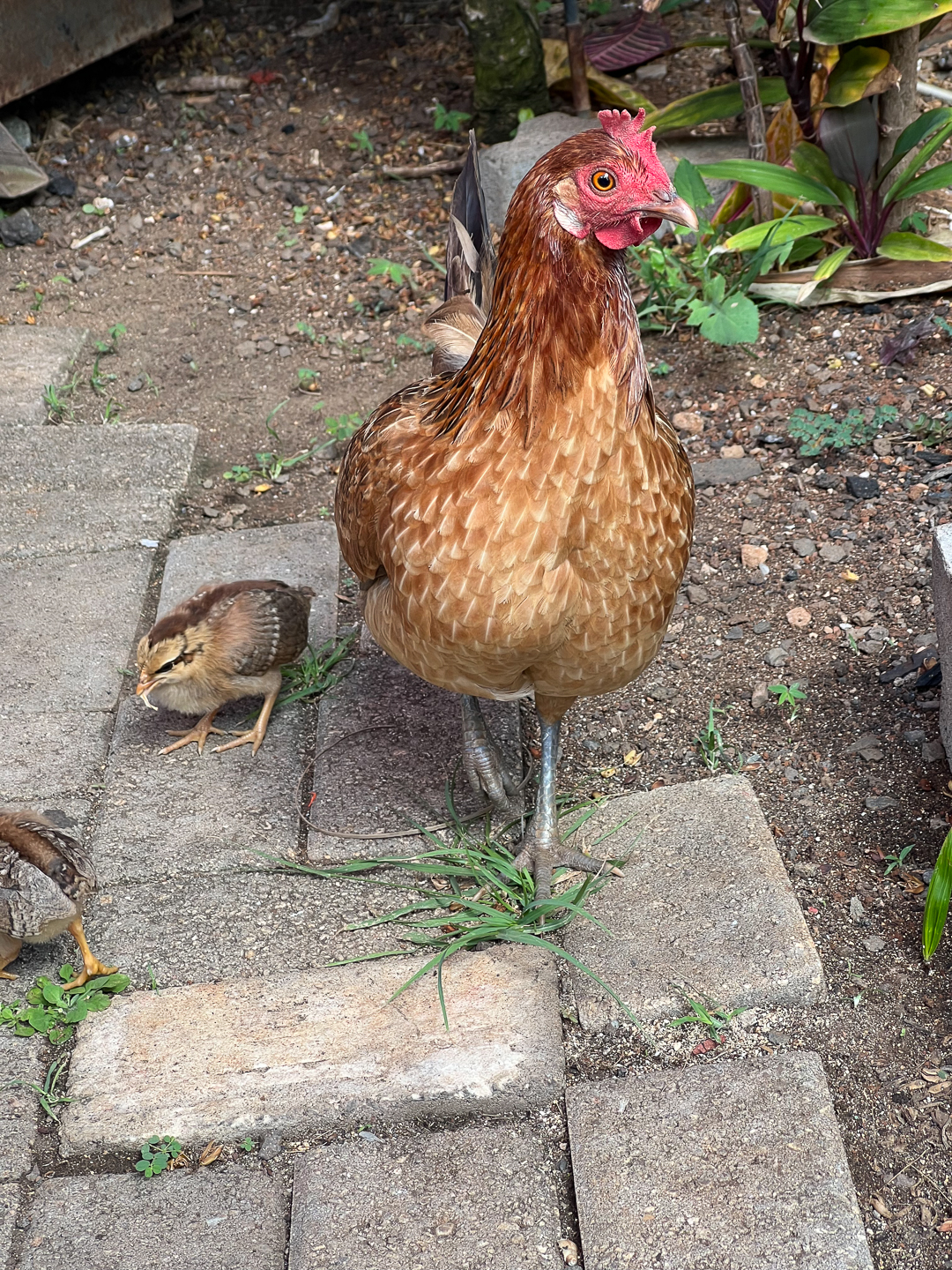 We had lunch today at Chicken in a Barrel BBQ in Kapa’a. It was probably the least expensive meal we’ll have on Kauai, but it was tasty and popular, even with the chickens who are all over the island (there were “don’t feed the chickens” signs in the seating area).