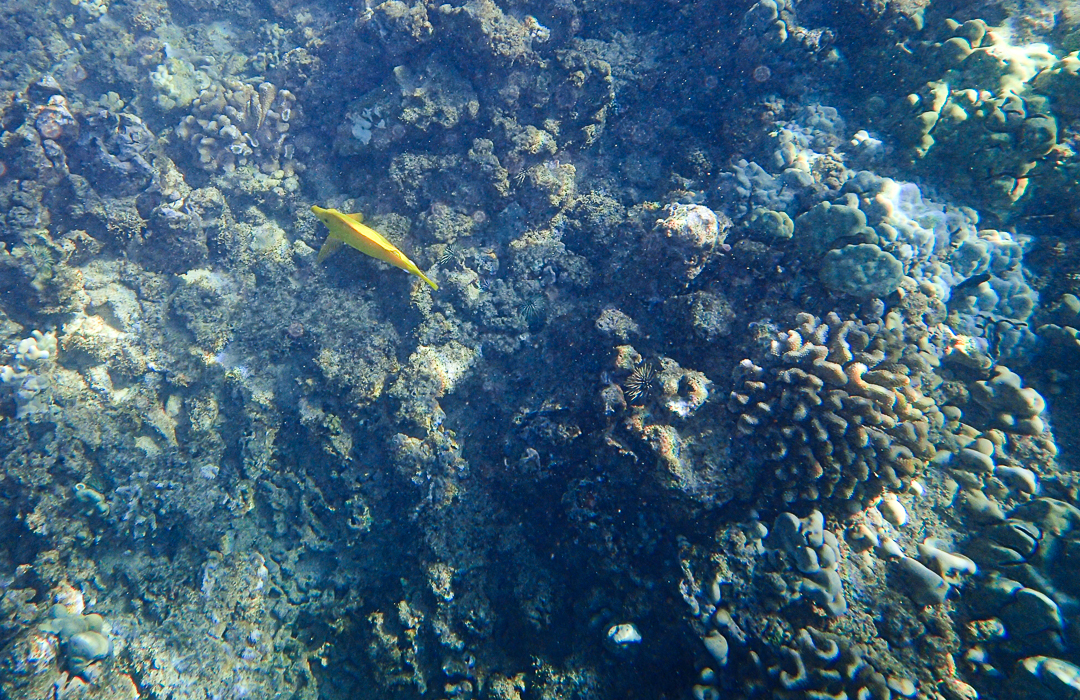 We went snorkeling this morning at the resort; it had been three years since we’d done it and it took a while to get comfortable again. The viewing was good – Diane brought her underwater camera and took lots of photos! We saw old friends like yellow wrasses and black triggerfish almost as soon as we got in the water.
