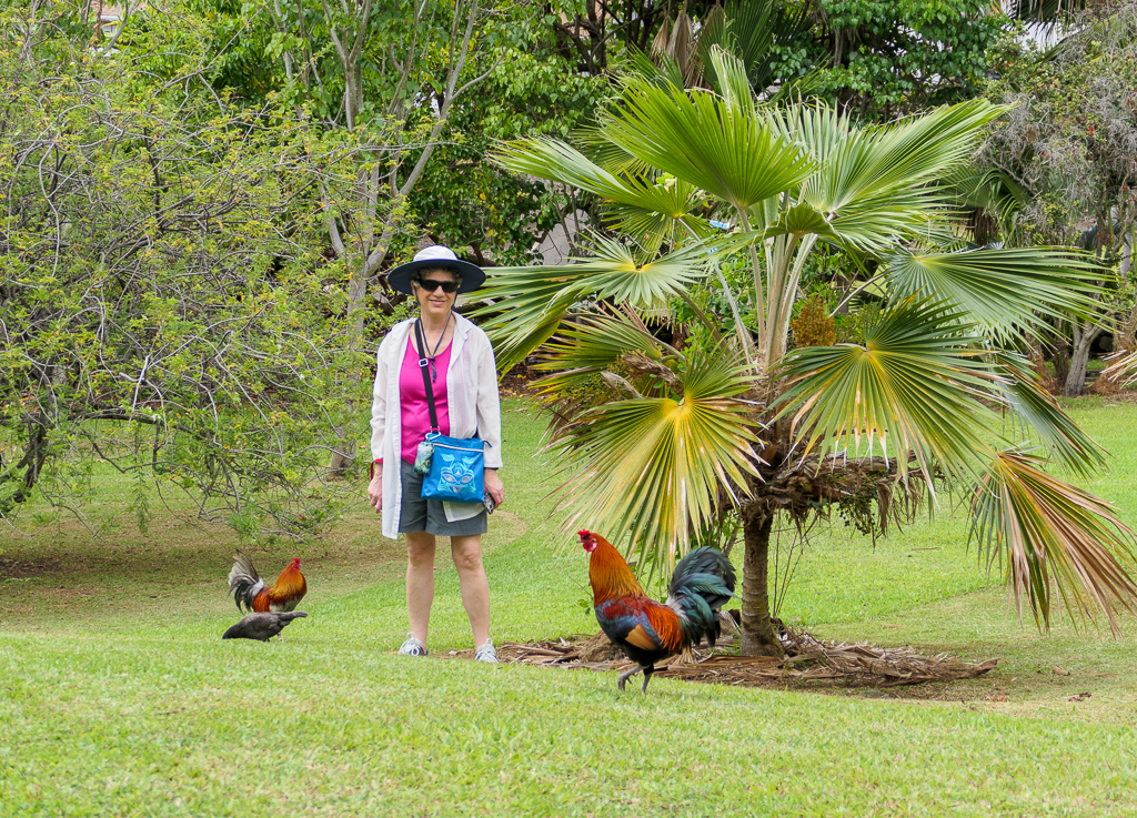 We left the gardens reluctantly and drove another five minutes to the Coffee Shack. It was popular; we had to wait half-an-hour to be seated. Luckily, the view from their deck was stunning, and so was the food. We had the pan-sauteed Ono sandwich and split a lilikoi (passionfruit) cheesecake.