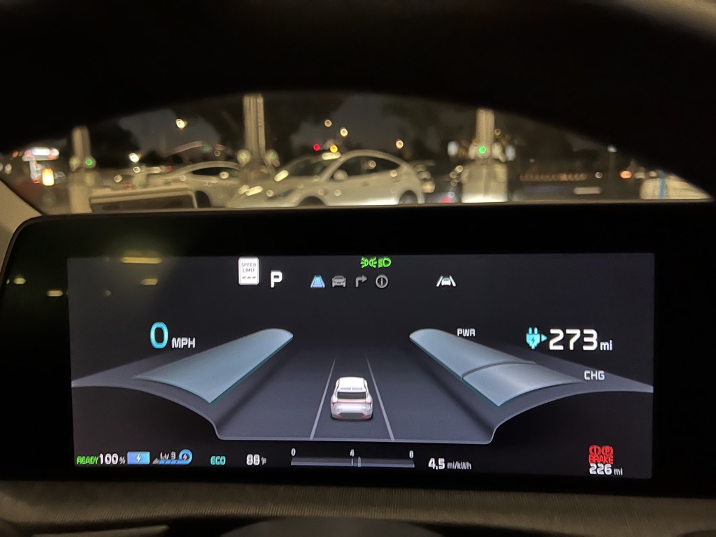 I had hoped to take advantage of the row of chargers in the parking garage while we were enjoying the show, but it was not to be. We got to the garage a bit late, and the first charger I tried claimed to be “in use” on both sides. I gave up, moved the car to a regular spot, and we barely made it to the theatre before the curtain went up. By the time I got home, the car was down to 35%.