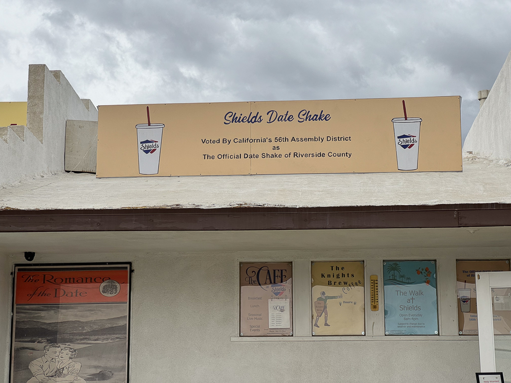 We drove to Shields Date Garden in Indio for lunch and date shakes. I’d never noticed the sign over the door that said that their shake was the Official Date Shake of Riverside County, but it’s true.