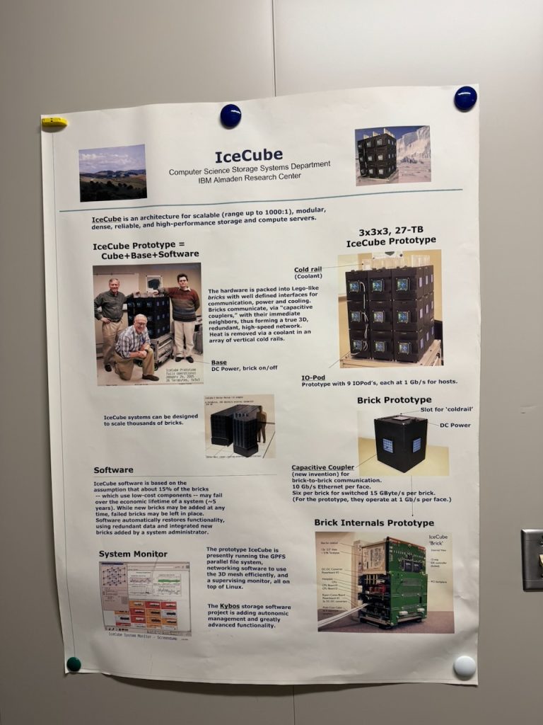 Some things had changed, of course; the library was now a social area (the “Hilltop Hub”), for example. But many things had stayed the same, like this poster near Ron’s office for a new storage architecture…well, it was new in 2005.